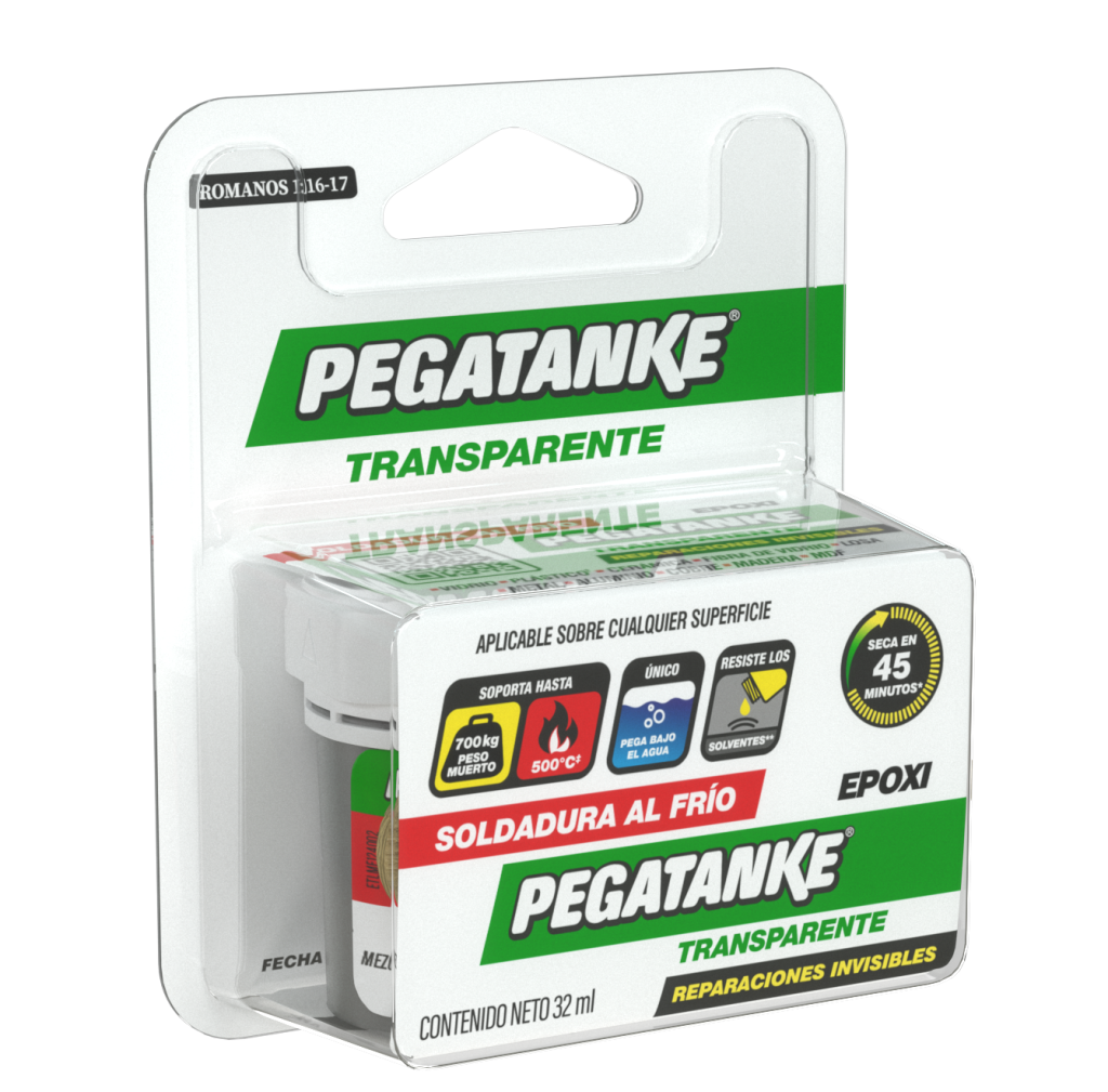 Es un pegamento epóxico profesional formulado para reparaciones invisibles. Es ideal para ser usado en una variedad de industrias, incluyendo automotriz, naval, eléctrica, aeroespacial, militar y de la construcción. Epóxico transparente de PEGATANKE® es reconocido por su alta resistencia a la tensión y altas temperaturas, lo que lo hace único en su clase. También puede ser utilizado por artesanos y aficionados para crear proyectos personalizados, como joyas, muebles y esculturas.