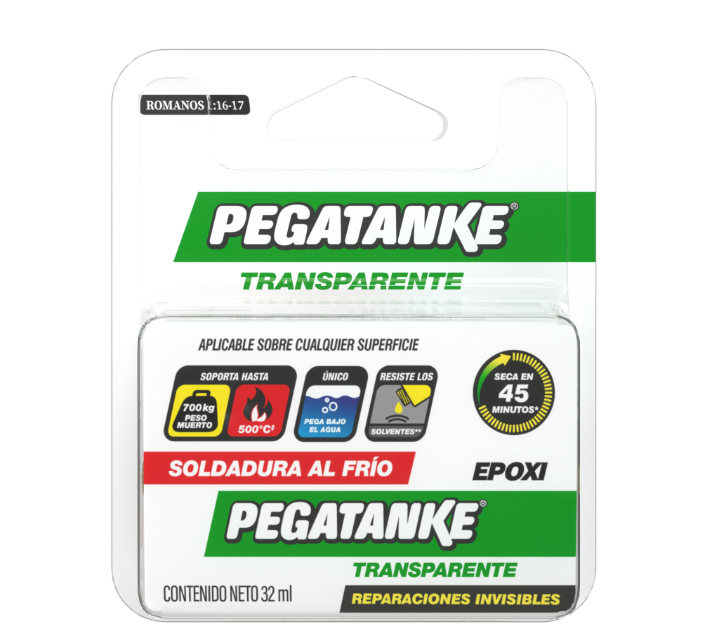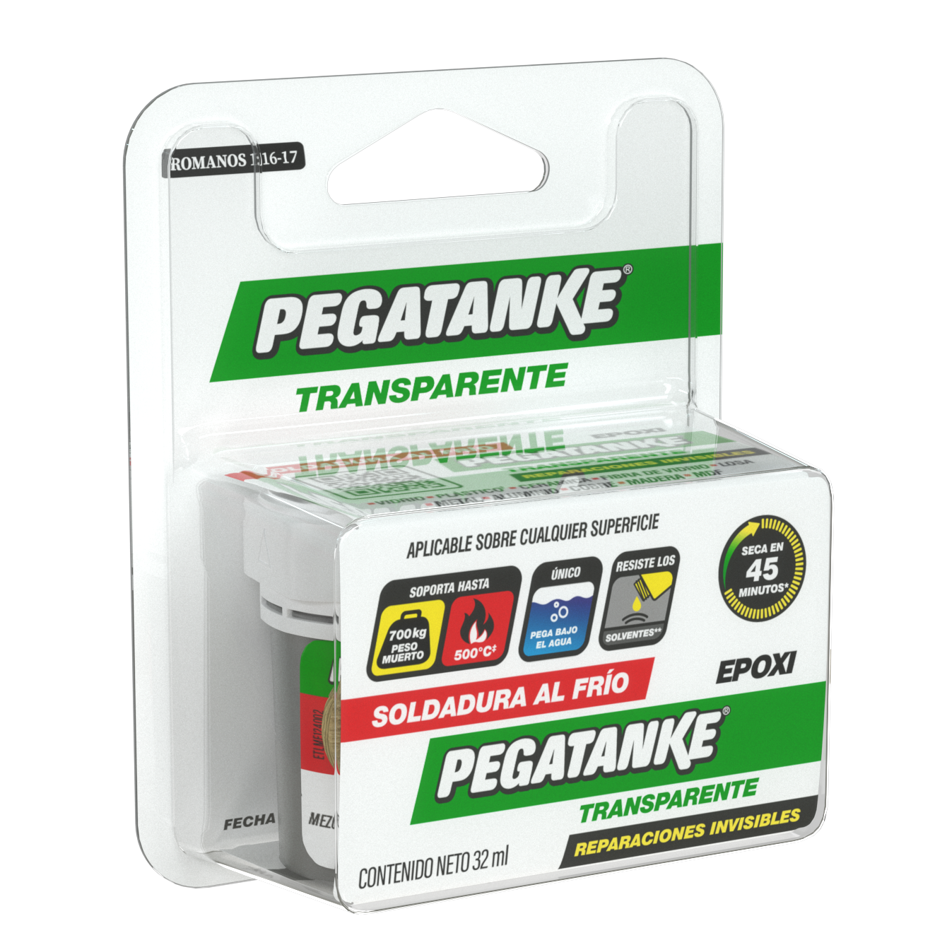 Es un pegamento epóxico profesional formulado para reparaciones invisibles. Es ideal para ser usado en una variedad de industrias, incluyendo automotriz, naval, eléctrica, aeroespacial, militar y de la construcción. Epóxico transparente de PEGATANKE® es reconocido por su alta resistencia a la tensión y altas temperaturas, lo que lo hace único en su clase. También puede ser utilizado por artesanos y aficionados para crear proyectos personalizados, como joyas, muebles y esculturas.