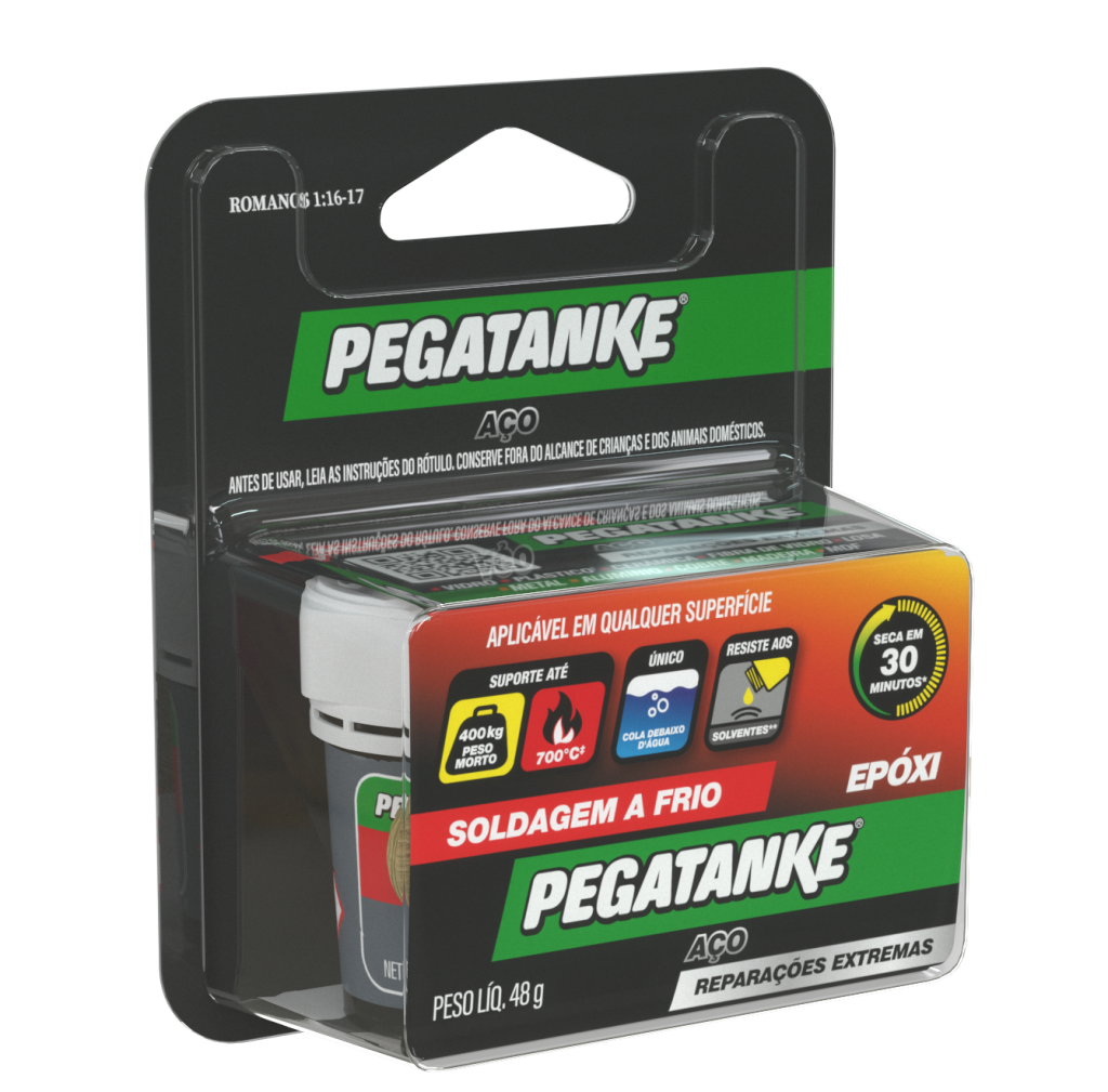Cola epóxi profissional formulada para reparações extremas. Ideal para as indústrias mais extremas e demandantes, como a automotriz, naval, militar e aeroespacial. Com a sua resistência comprovada às altas temperaturas (ATE 700 °C), resistência aos produtos químicos e solventes, Epóxi Aço de PEGATANKE® é o melhor sócio para mecânicos, pintores de carroceria, engenheiros e outros profissionais.